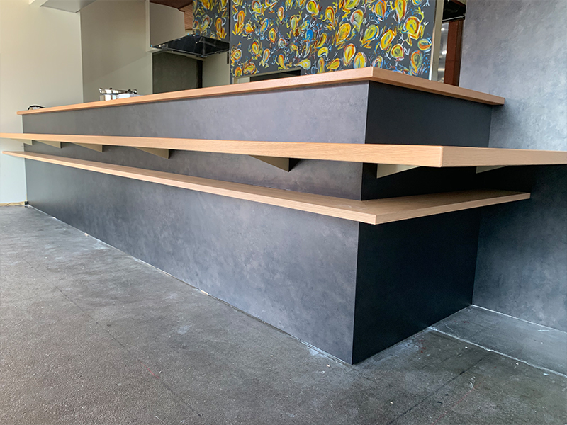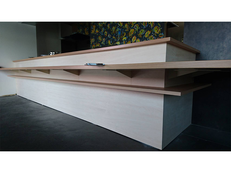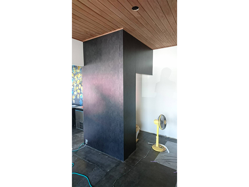 使用効果:装飾、店内壁面とカウンター背板面に部分的に施工することによって一般的なクロスや塗装に加えアクセントとして店内のイメージを大きく変えることが出来ます。掃除の際も表面が強いので水拭きしてもシートを痛めることはありません。