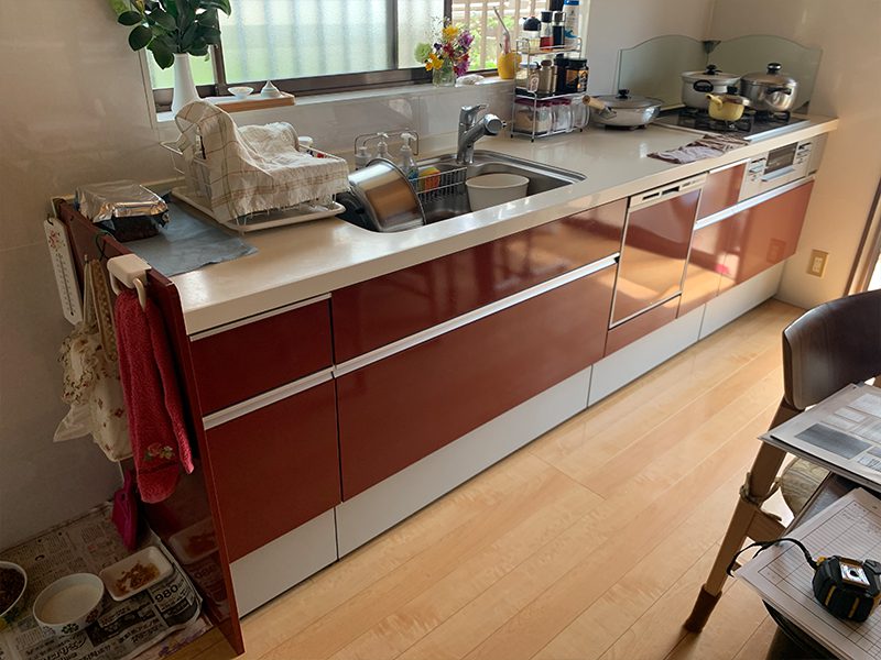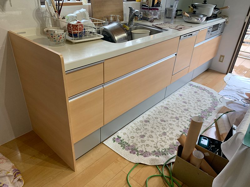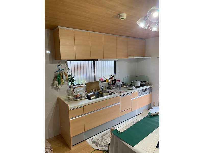 使用品種:リアテック 木目調シート 使用効果:長年使用しているキッチンですが、イメージを変えたいとの要望で淡い色合いの木目調シートを施工しました。元々が濃い色合いだったのでシートを貼るだけでその空間も明るく感じることができます。シートのバリエーションも豊富にあるのでお気に入りのタイプから選定できます。