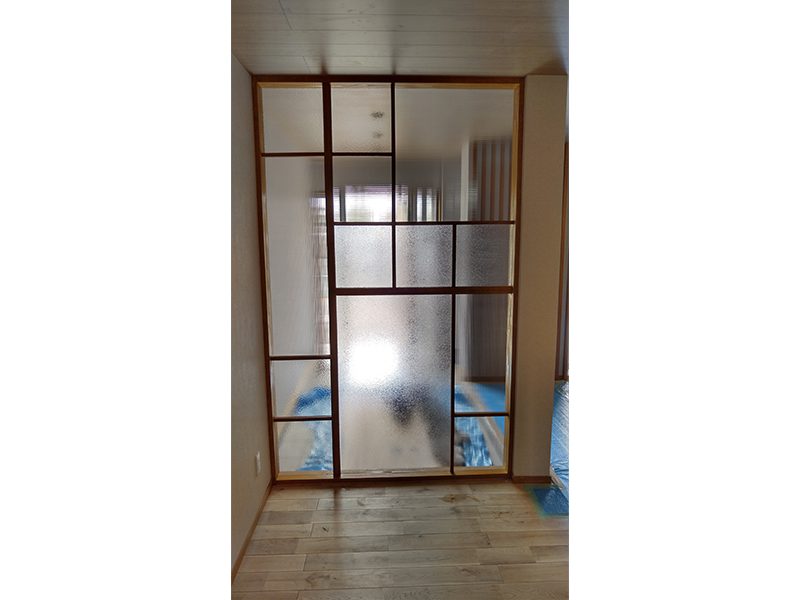 使用品種:サンゲツ GF1720、GF1809、GF1806 使用効果:装飾、プライバシー、店舗内玄関からの間仕切りへ施工しました。それぞれのフィルムを縦使いや横使いにランダムに施工することで独特の雰囲気の目隠しにすることができました。