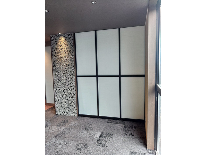 使用品種:3M:ミルキーミルキー 使用効果:プライバシー、ホテル内喫煙所に施工しました。 色の濃ゆいタイプですので、人がいることは確認できますが誰かは分かりません。