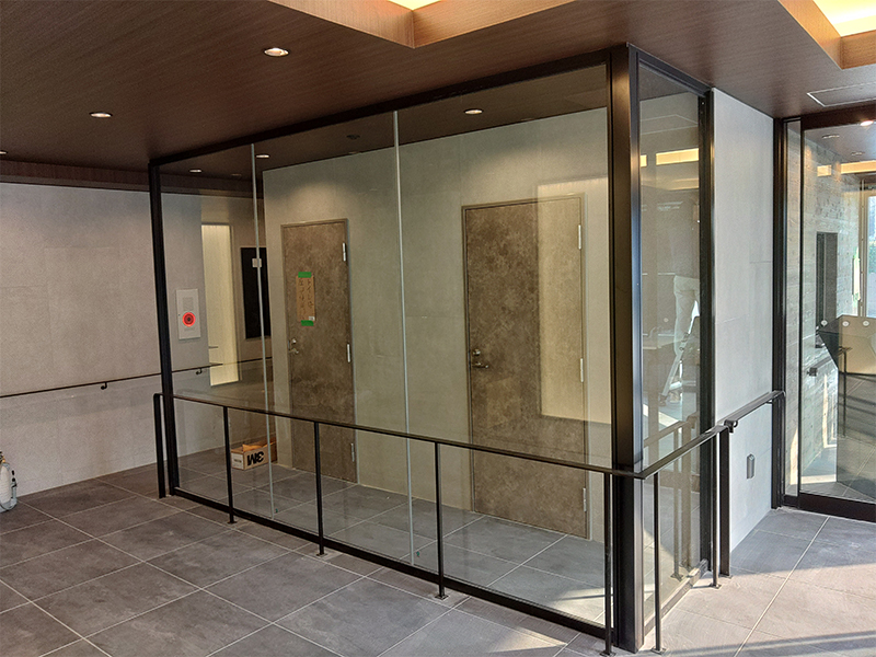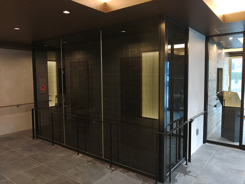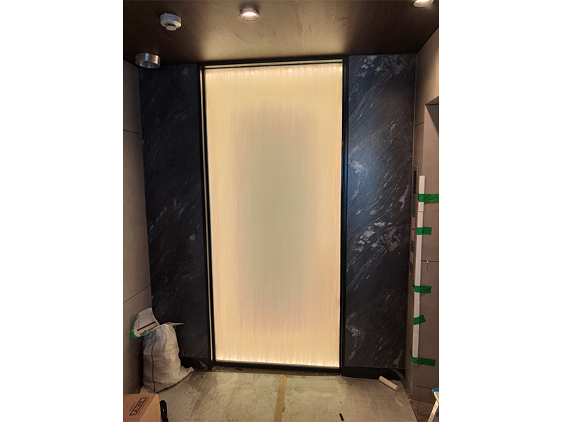 写真1.2 和紙調のフィルムです。光壁に使用することで落ち着いた雰囲気になりました。